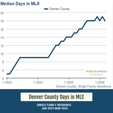 Homes are staying on the market longer. In Denver County, median days on the MLS increased from 5 days in January 2023 to about 18 days by March 2026. That said, not every listing behaves the same—some homes sit for months, while others go under contract quickly. This is why I always say each situation is different and understanding the data matters. Overall, this is one of the biggest shifts in the market. Buyers now have more time, less pressure, and better opportunities to negotiate.